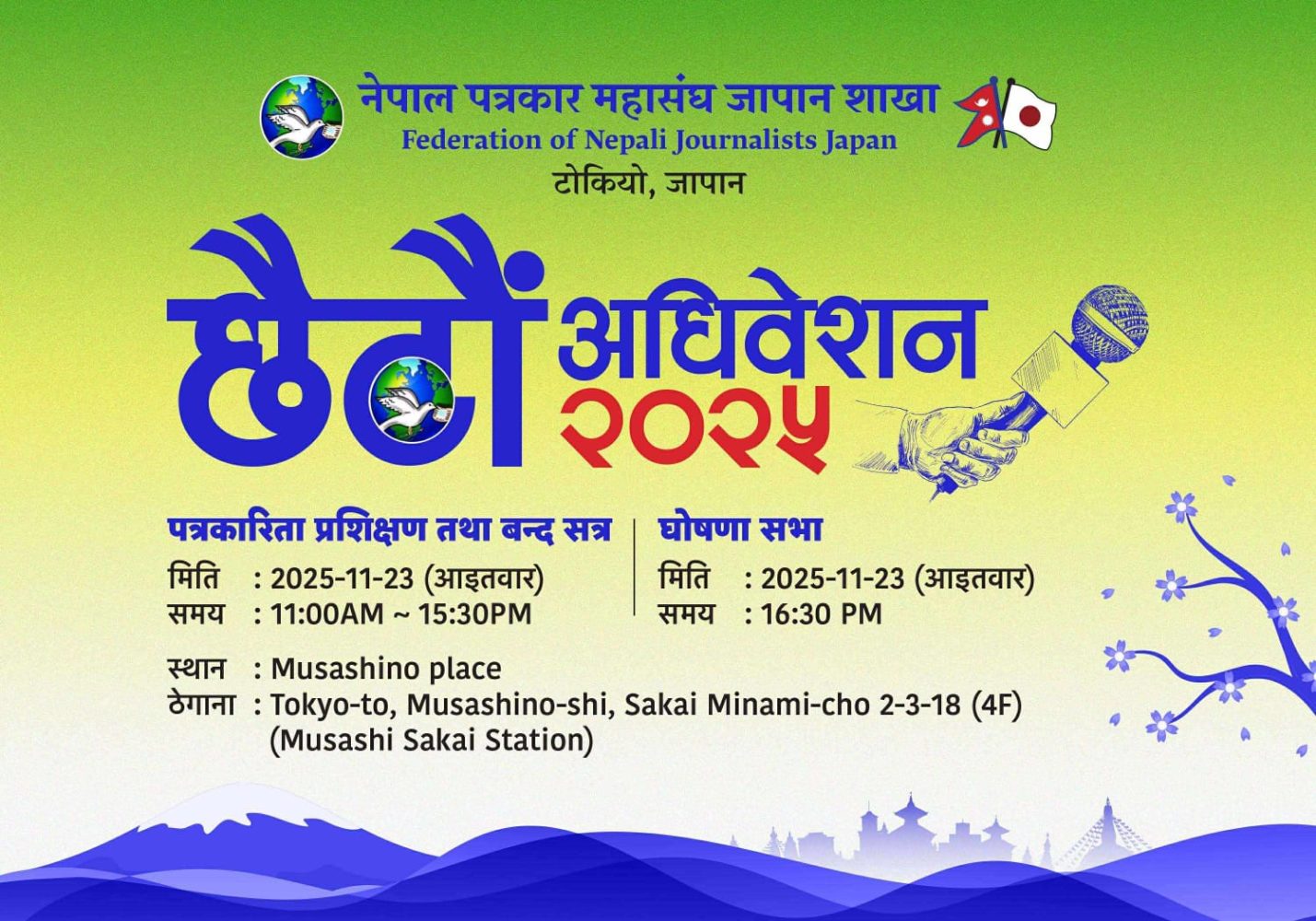 नेपाल पत्रकार महासंघ जापान शाखाको छैटौँ अधिवेशन २०२५ नोभेम्बर २३ मा हुने