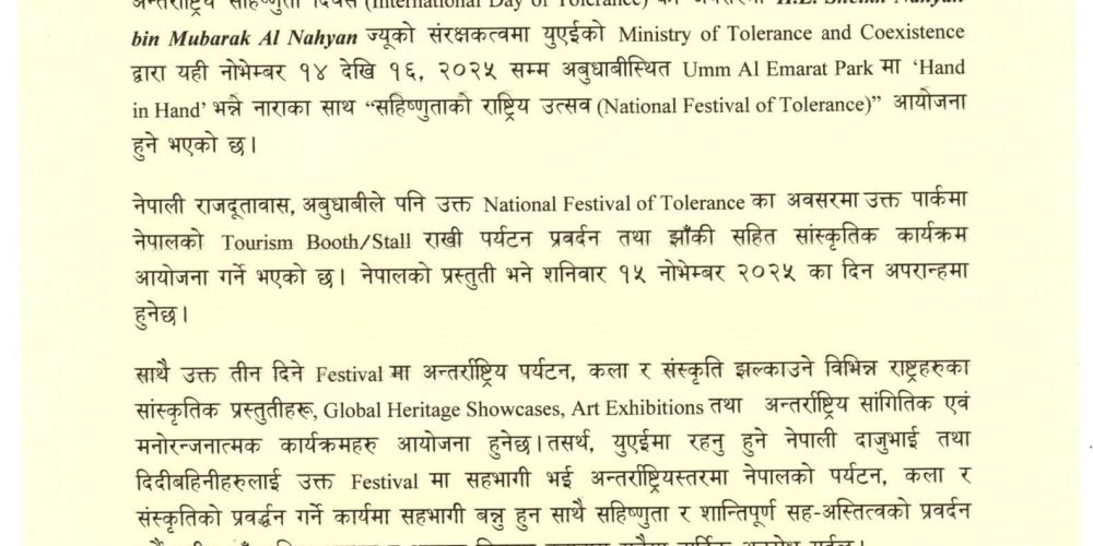दोहा । राष्ट्रिय लोक तथा दोहोरी प्रतिष्ठान नेपाल, कतार शाखाले नेपाल पत्रकार महासंघ (एफएनजे) कतार शाखालाई सम्मान गरेको छ। प्रतिष्ठान शाखाको स्थापना कालदेखि नै एफएनजे कतारले प्रदान गर्दै आएको भौतिक तथा नैतिक सहयोगप्रति कृतज्ञता व्यक्त गर्दै संस्थाले विशेष सम्मान अर्पण गरेको हो।