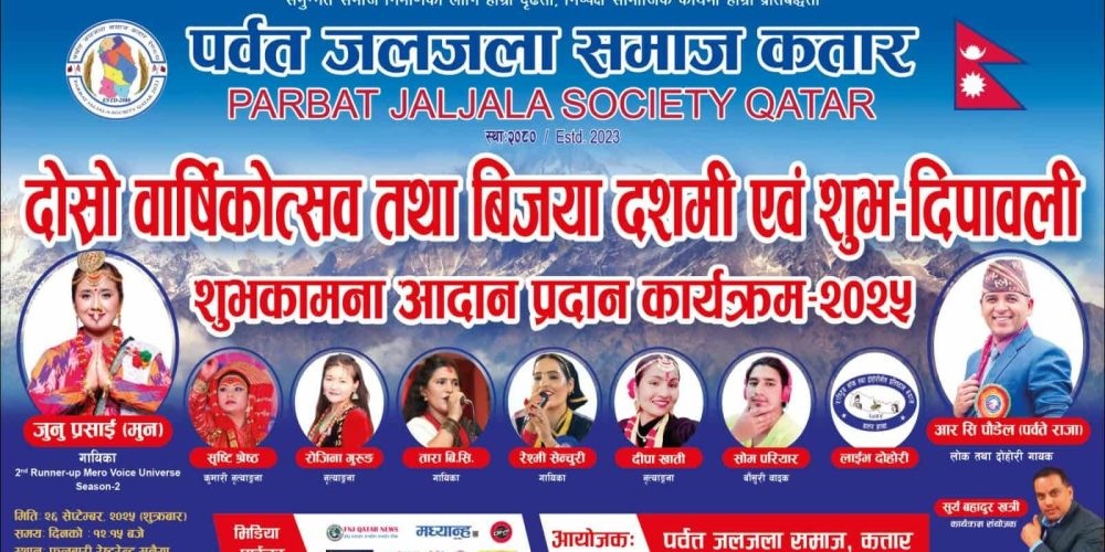 कतारमा पर्वत जलजला समाजको दोस्रो वार्षिकोत्सव तथा शुभकामना आदान–प्रदान कार्यक्रम हुने