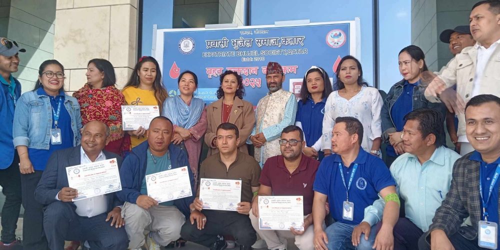 प्रवासी भुजेल समाज कतारले बृहत रक्तदान कार्यक्रमको आयोजना गर्दै
