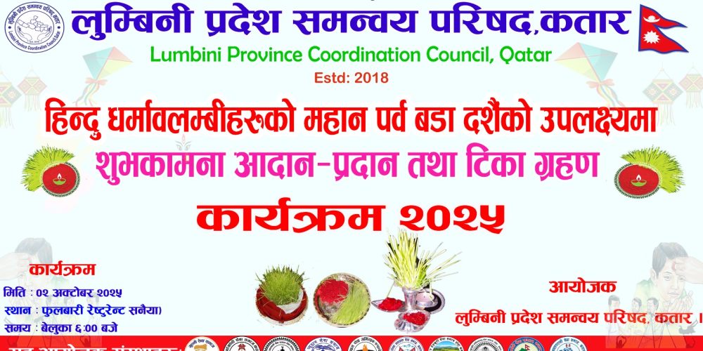 लुम्बिनी प्रदेश समन्वय परिषद कतारले दशै मनाउने